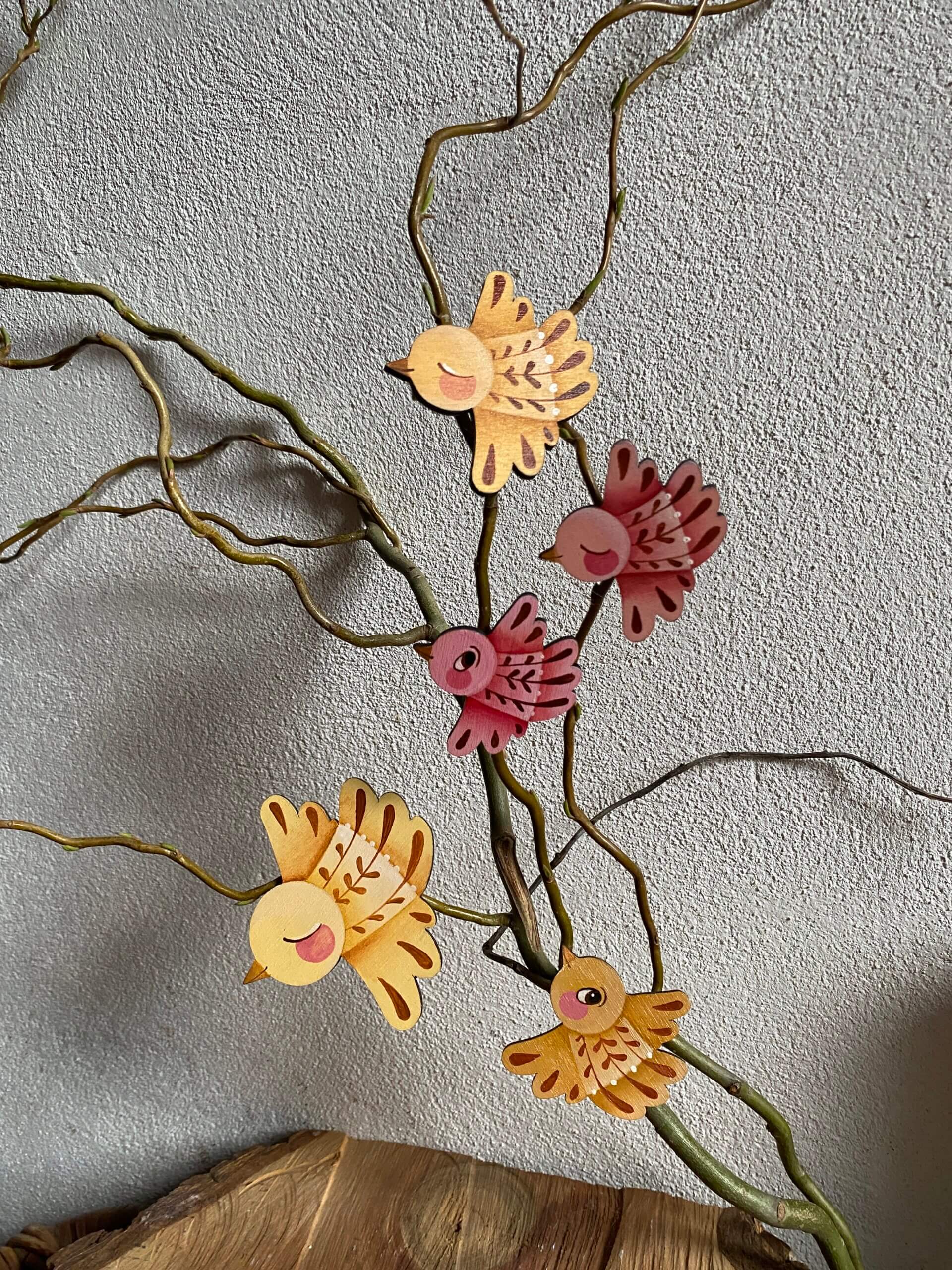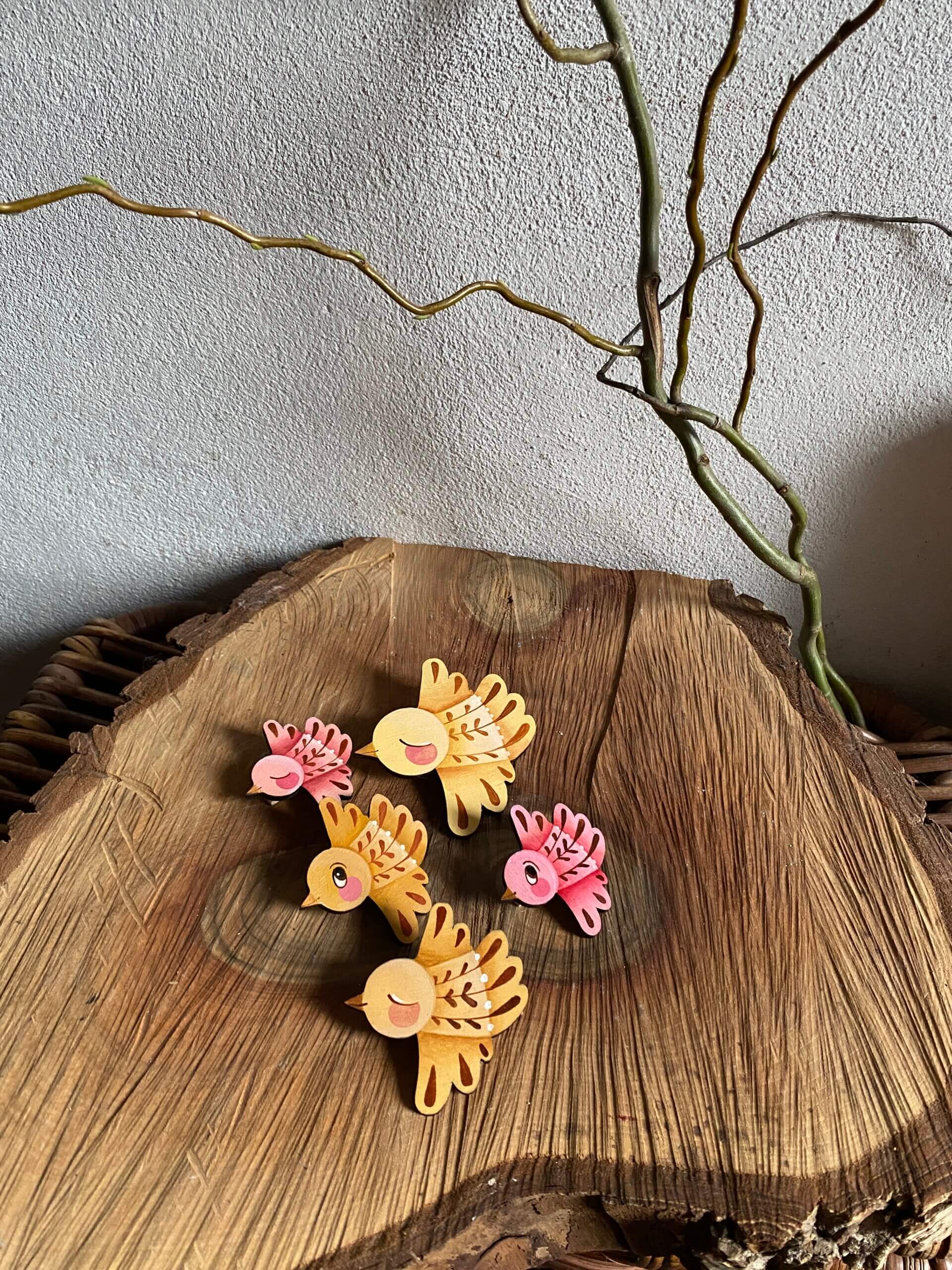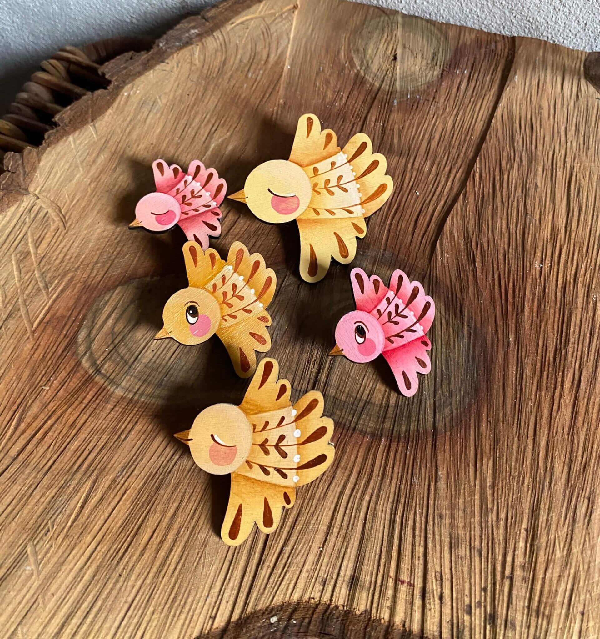 sada 5ks ručně malovaných ptáčků v autorském tvaru inspirovaném mými obrazy. Každý je malovaný zvlášť což z nich dělá malé originály.